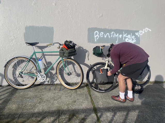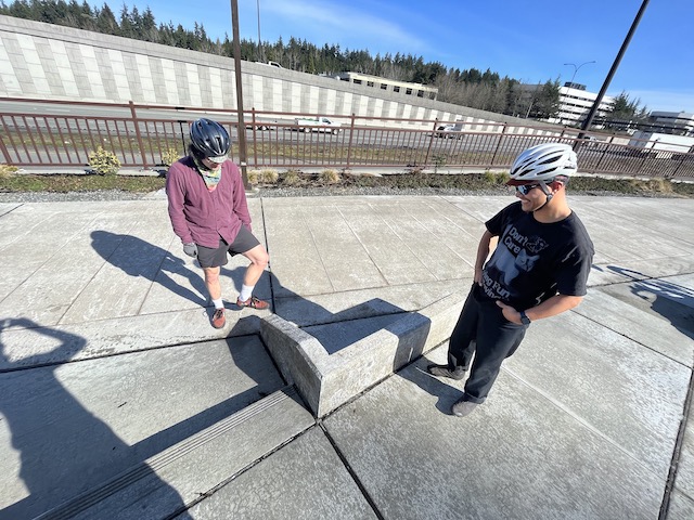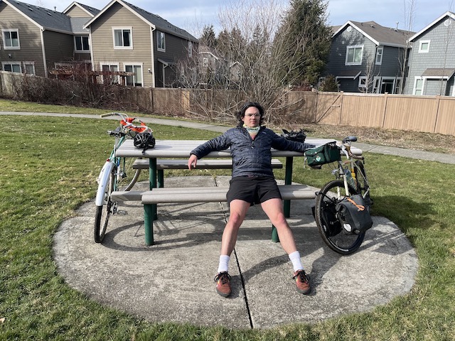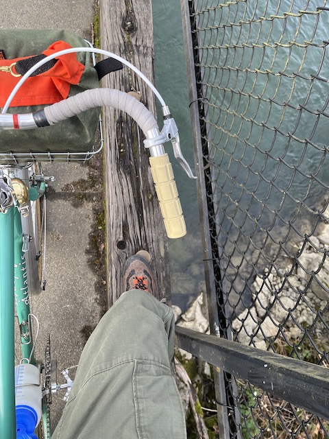 graham met me up at my place and we peddled over the i90. we met up at 8:45 am on a brisk day, but graham was ready for summer those shorts! you'll notice this time around the guys at goodweather helped install some fenders for me. can't be lookin like i shit myself again.