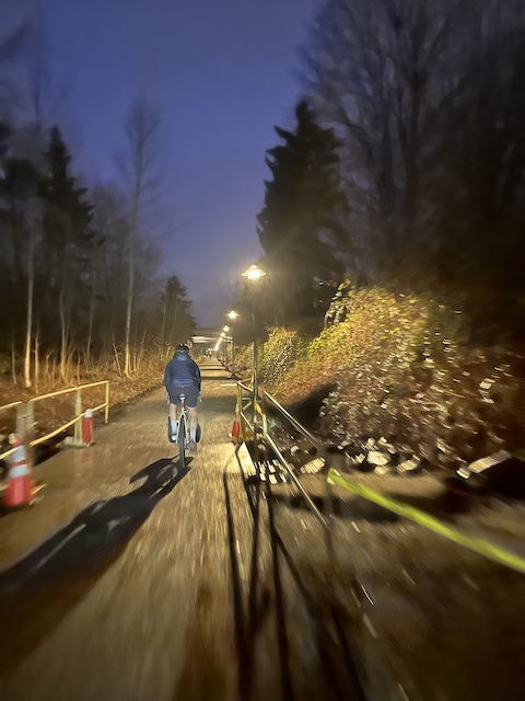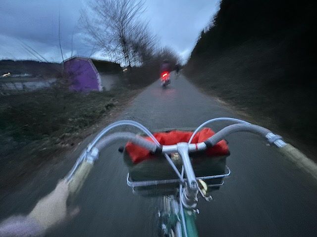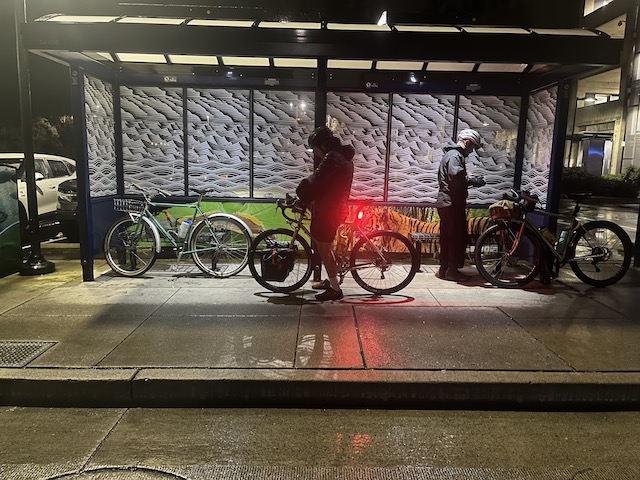 it was a bright and sunny all day, then we hit the CKC, the sun fell, and the rain came. oh well. we got a couple snickers bars at the 7-11 to power through this last bit.